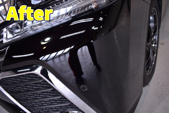 バンパー部分の長年の蓄積でこびりついた水垢などもしっかりと除去できました。